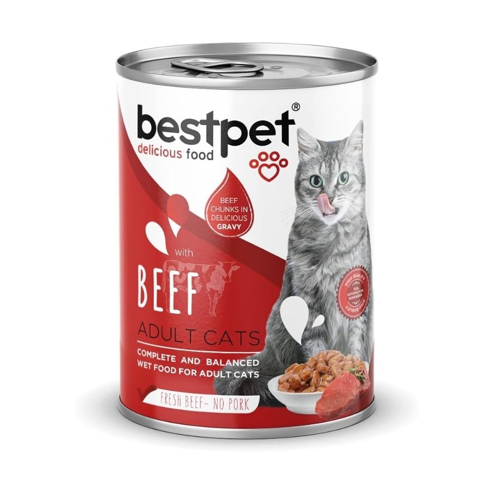 BESTPET Adult Cat Beef is a balanced food specially formulated for adult cats with a delicious beef flavor. It provides essential nutrients including proteins, vitamins, and minerals to support daily activity, healthy skin, and a shiny coat.
