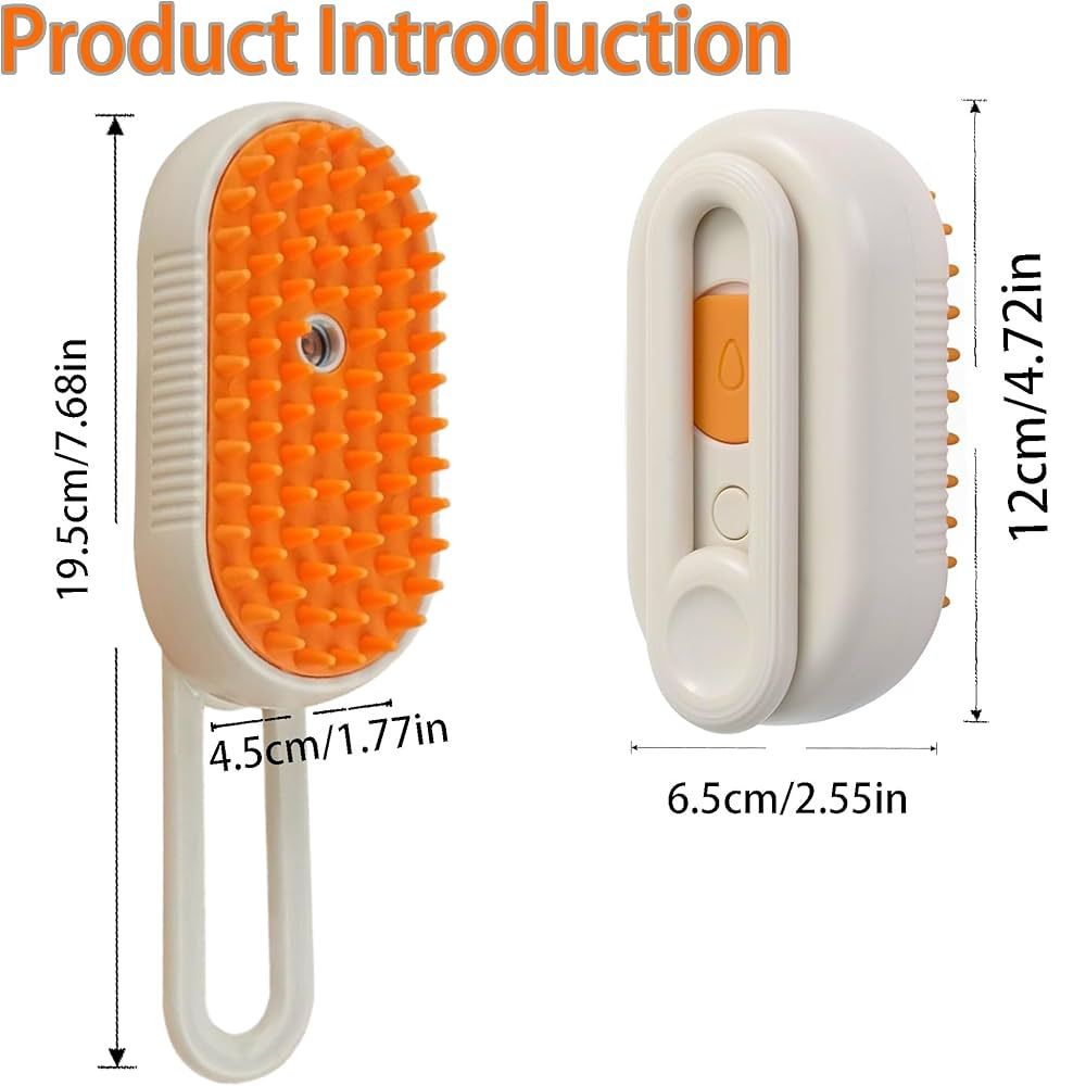 Cat Steam Brush 3 in 1 Pet Grooming Brush (Orange) is an innovative steam grooming brush with a spray function, designed to remove shedding hair, clean the coat, and detangle fur easily. Suitable for cats and dogs with long or short hair. The gentle steam helps reduce flying hair, improves grooming efficiency, and leaves your pet’s coat soft and clean with a comfortable experience.
